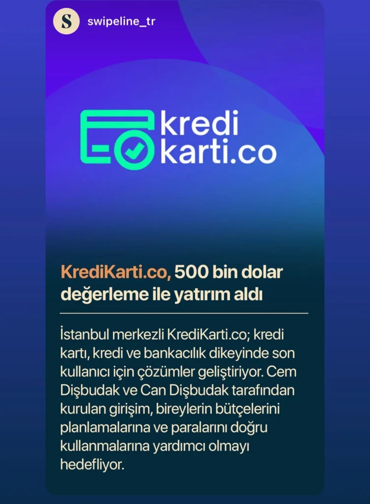 Swipeline: Yerli girişim KrediKarti.co, 500 bin dolar değerleme ile yatırım aldı