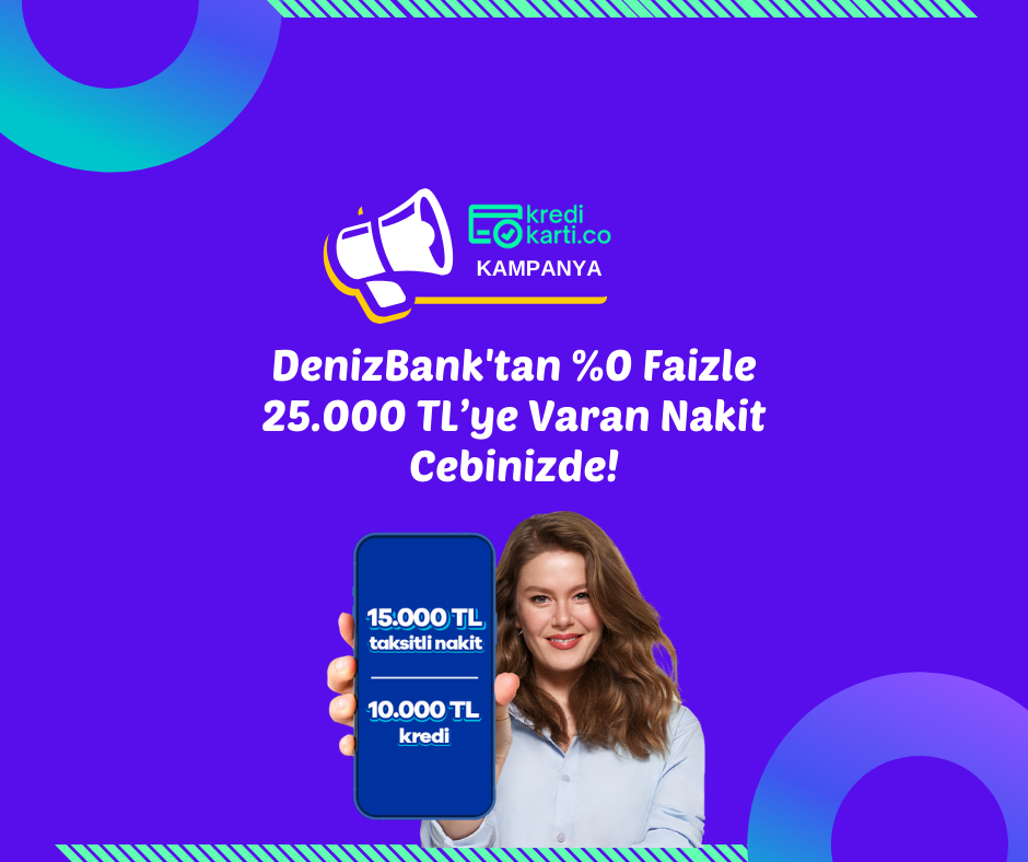DenizBank’tan yeni müşterilere özel, %0 faiz oranlarıyla 10.000 TL’ye varan kredi ve faizsiz 15.000 TL’ye varan Taksitli Nakit fırsatı MobilDeniz’de!