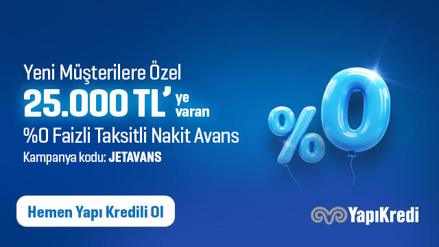 - Kampanyadan 5-28 Şubat 2025 tarihleri arasında “JETAVANS” kampanya kodunu kullanarak Yapı Kredi’ye ilk defa müşteri olanlar yararlanabilecektir.