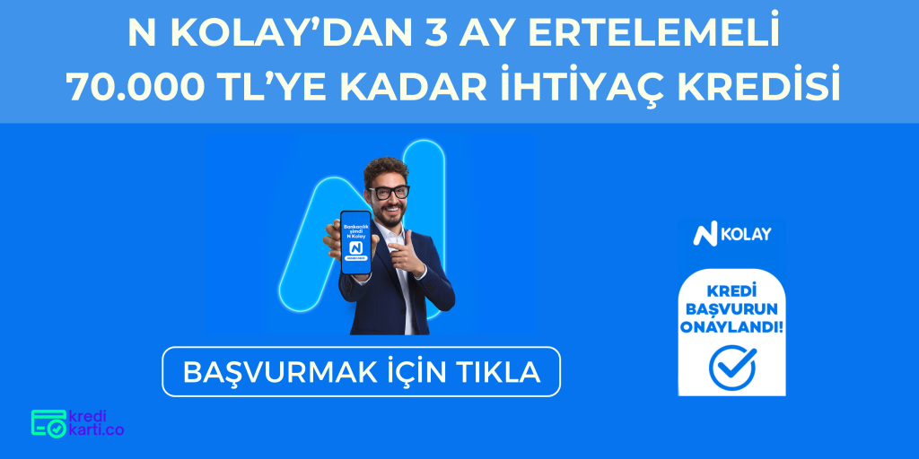 Kredi verme oranı açısından biraz daha yüksek oranlara çıkabilen Aktif Bank’ın N KOLAY’ı ise hem 5000 TL faizsiz avans veriyor hemde ertelemeli olarak kredi çekebilmenizi sağlıyor. Başvurmak için aşağıdaki görsele tıklayabilirsiniz.